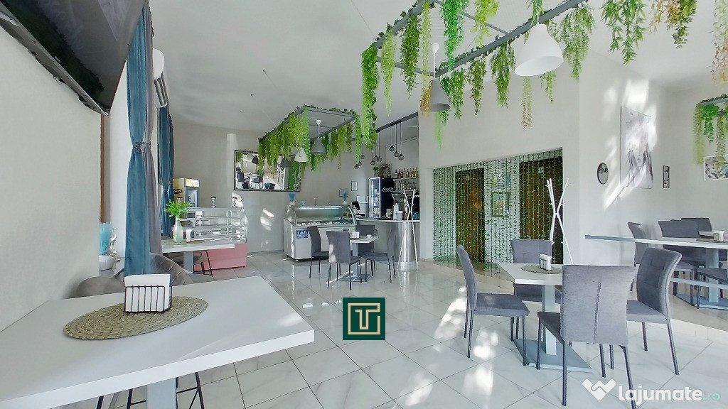 ???? Spațiul este amplasat în punctul zero al localității, vis-a-vis de Primărie, de Biserica Romano-Catolică în stil neogotic și de parcul central. Este locul cu cea mai mare vizibilitate, cel mai bun trafic pietonal și cu o clientelă selectă deja formată. Toată lumea din Vinga știe această locație, iar aici funcționează cu succes o gelaterie unde se organizează constant evenimente și seri speciale.