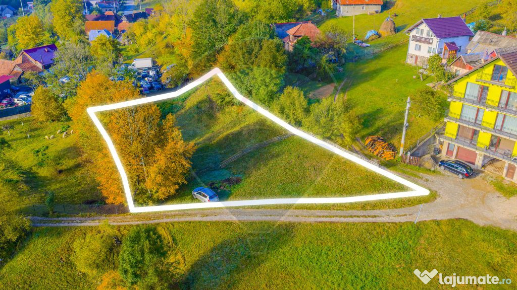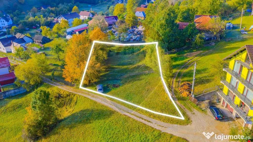 Un teren intravilan, cu o suprafață de 1.564 mp, perfect amplasat într-o zonă liniștită, dar aproape de pulsul turistic al Branului.