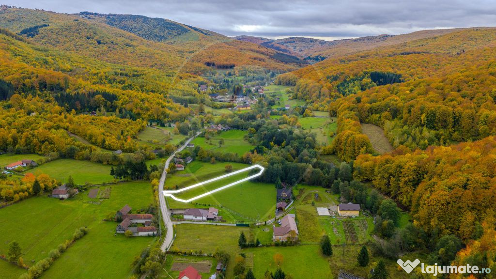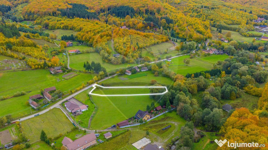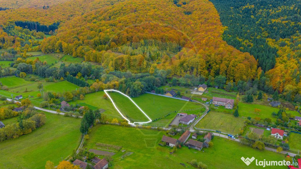Teren parțial împrejmuit, situat într-un cadru natural superb