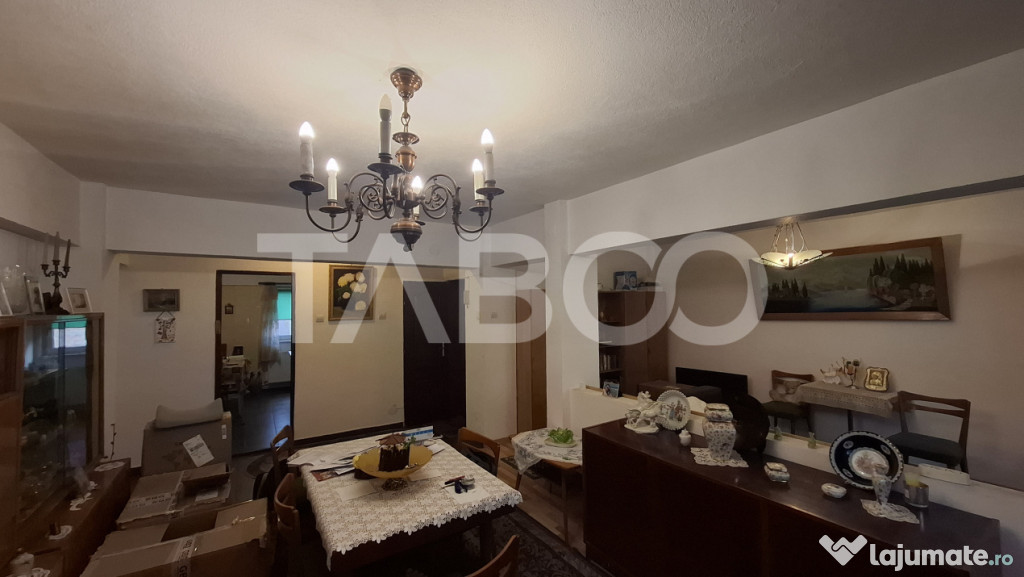 TABOO Imobiliare propune un apartament de vanzare cu 4 camere, decomandat, situat in localitatea Sibiu, zona Centrul Istoric, aflat la etajul 1 intr -un imobil tip bloc cu regim de inaltime pe Parter + 2 Etaje; anul constructiei 1992, structura caramida. Suprafata utila de 85 mp + balcon de 4 mp, pivnita de 10 mp.