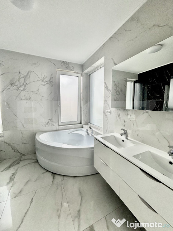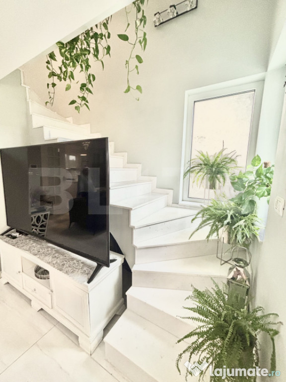 Blitz te invita sa descoperi rafinamentul unei construcții noi, realizată cu atenție la detalii și finisaje de înaltă calitate. Această casă cu regim de înălțime P+2 impresionează prin spațiul generos, luminozitatea naturală și atmosfera elegantă ce te întâmpină din primul moment. Proprietatea dispune de: 4 dormitoare spațioase și 4 băi moderne, fiecare amenajată cu bun gust.Living open space spectaculos, perfect pentru relaxare și socializare;
