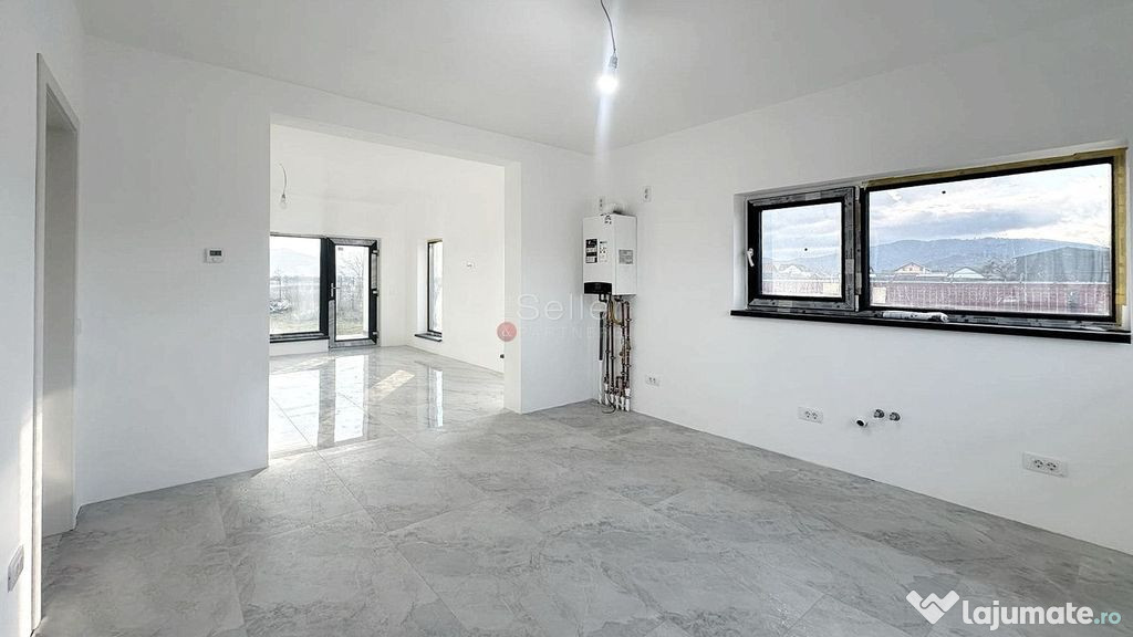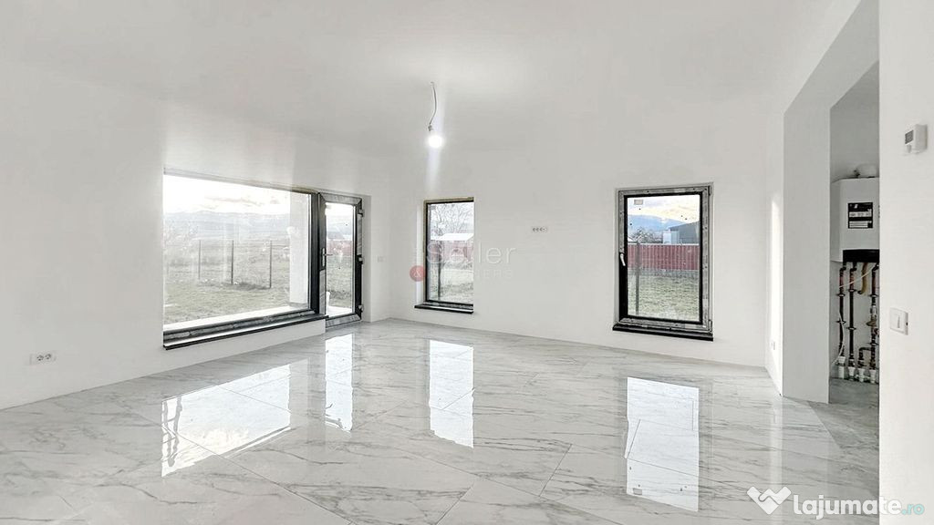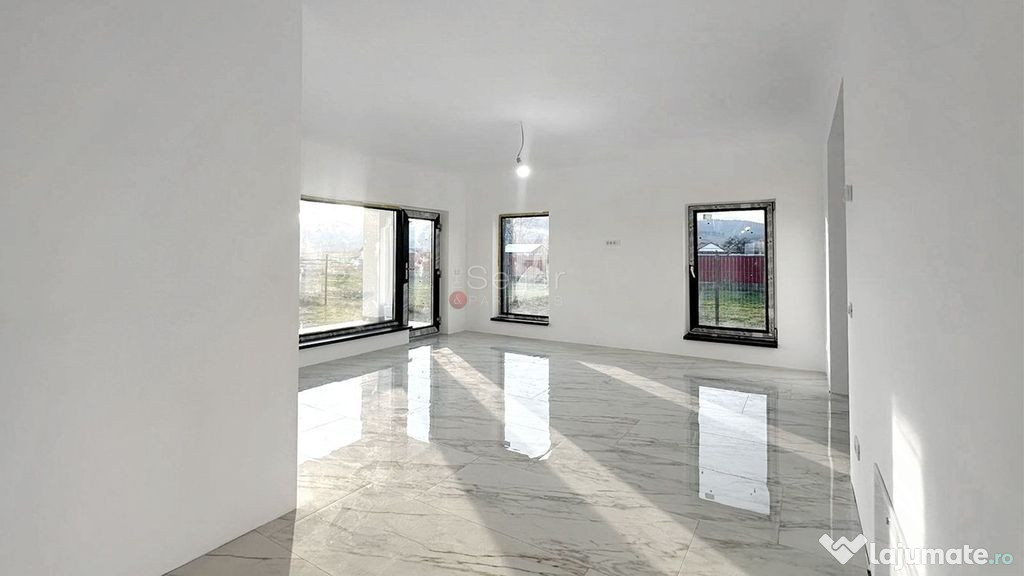 - living, de tip open-space, dispune de suprafata generoasa cu acces la terasa din spatele casei;