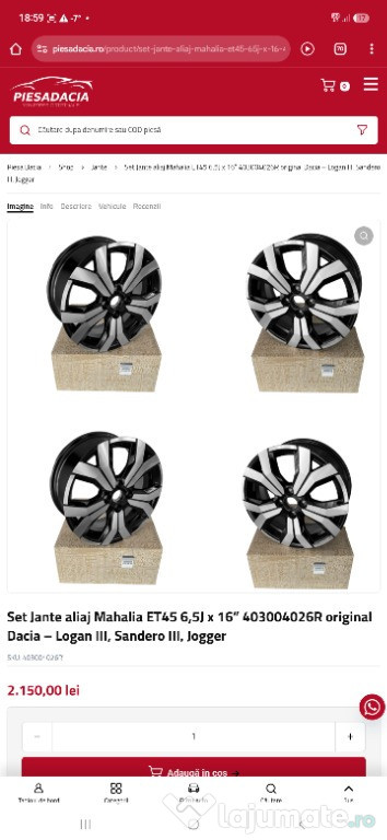 Contra cost se oferă jantele originale DACIA Mahalia cu anvelope de vara continental dot 2023 (1850 Ron negociabil)