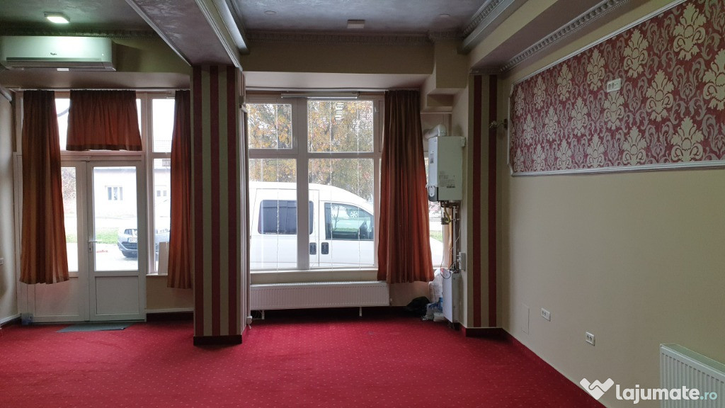 Dau in chirie spatiu comercial amenajat, Arad, zona Poetului. Suprafata 54mp, clima 18000BTU ( se poate folosi si pentru incalzire ), incalzire proprie pe gaz ( termoteca ), curent trifazic, mocheta , 2 bai , iluminare LED, vitrina mare , parter bloc. Informatii: 722500624Suprafaţă totală: 55 m²