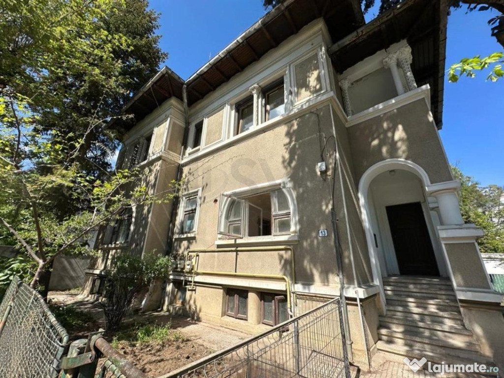 REV2005240 O oportunitate rara de investitie intr-o proprietate deosebita, aceasta vila impresionanta este situata in cartierul Primaverii, una dintre cele mai exclusiviste zone ale Bucurestiului. Vila se remarca prin eleganta clasica, spatiile generoase si farmecul autentic al unei constructii interbelice.Proprietatea este amplasata pe un teren de 394,57 mp, oferind intimitate si posibilitati multiple de amenajare. Atmosfera este una luminoasa si primitoare, datorita ferestrelor ample care permit patrunderea luminii naturale pe tot parcursul zilei.