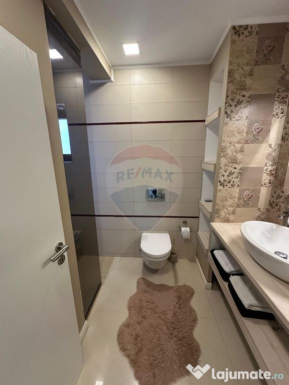 Va oferim la inchiriat un apartament spatios, bine compartimentat, frumos si util.Un living cu bucatarie in sistem open space , 2 dormitoare, dressing spatios la dormitorul mare , 2 bai si o terasa generoasa . Masina dvs este si ea in siguranta , intrarea in incinta blocului este securizate si sunt disponibile 2 locuri parcare sub copertina.