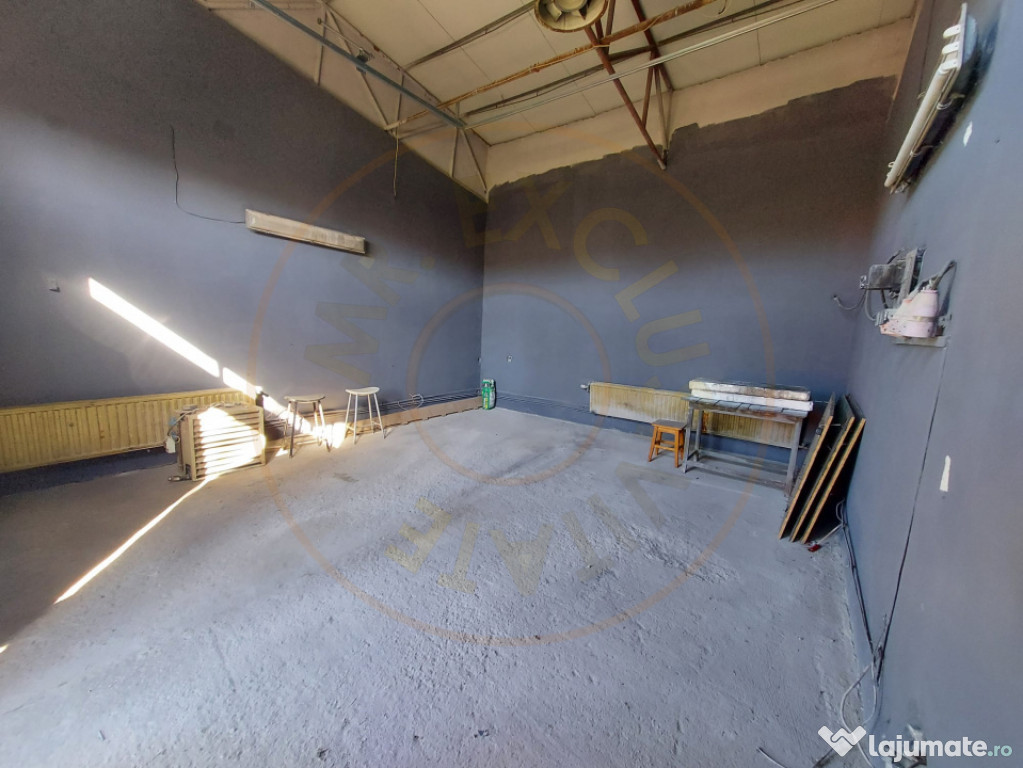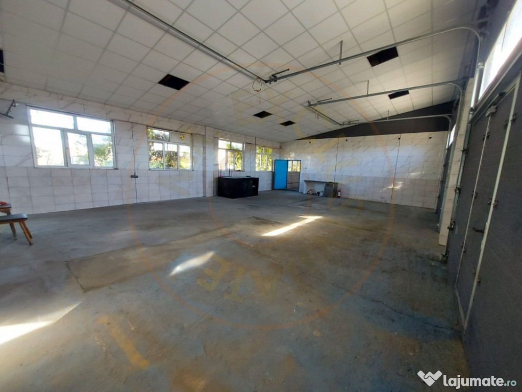 Hală principală: 200 mp cu birou, vestiar, magazie si baie – ideală pentru producție, depozitare sau atelier;