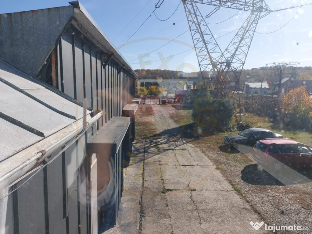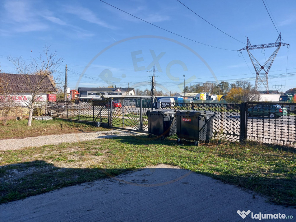 Suprafață teren: 3.000 mp, complet împrejmuit, cu acces auto și poartă mare pentru camioane;