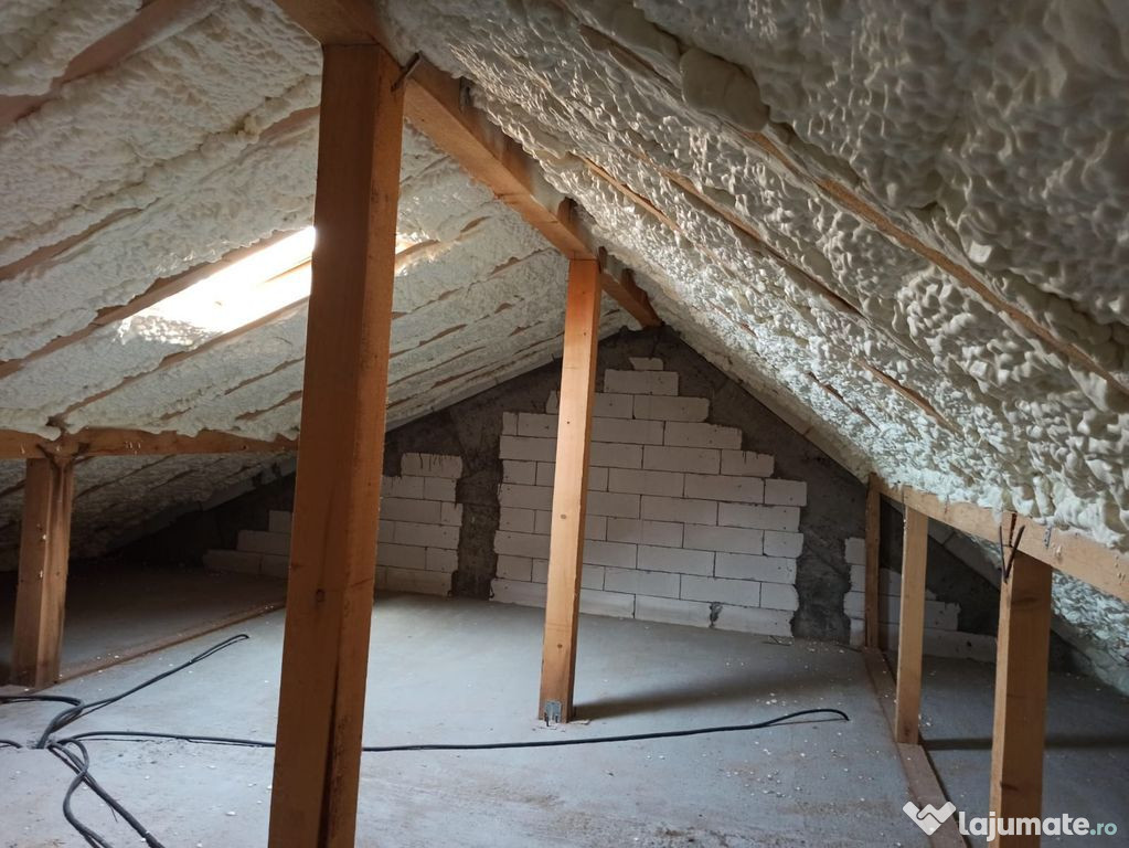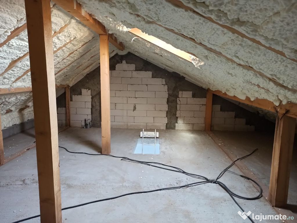 Podul este izolat cu spuma(se preda ca atare) si are o suprafata utila de aproximativ 60mp, se preda finisat/compartimentat contra cost, daca se doreste.