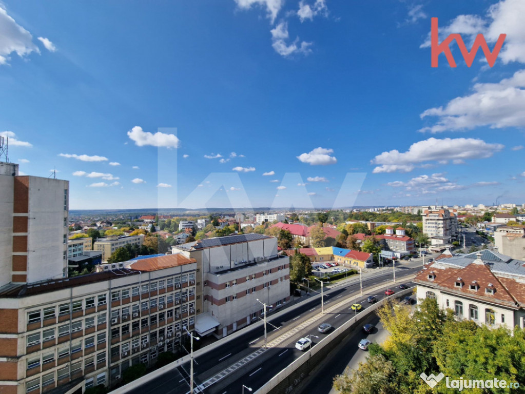 Apartament de vânzare în inima orașului, situat într-un bloc solid construit în 1971, la etajul 10, cu două lifturi moderne. Proprietatea are o suprafață utilă de 95 mp și este compusă din 3 camere spațioase, 2 balcoane cu vedere panoramică spectaculoasă asupra orașului, o baie și o bucătărie complet utilată. Apartamentul este luminos, bine compartimentat și oferă o atmosferă confortabilă, ideală atât pentru locuință permanentă, cât și pentru investiție. Localizarea ultracentrală asigură acces rapid la restaurante, magazine, transport și toate punctele de interes din zonă, fiind o alegere excelentă pentru cei care își doresc un stil de viață urban, cu totul la îndemână.Id intern: P11440
