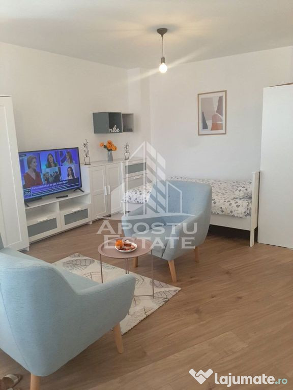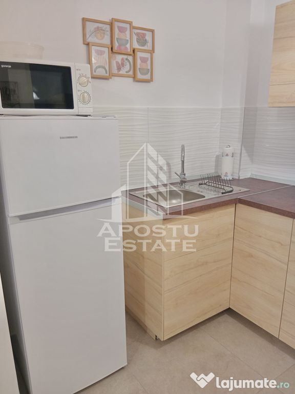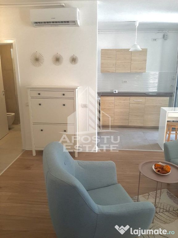 APOSTU ESTATE va propune spre inchiriere un apartament modern, situat in zona Circumvalatiunii City of Mara, una dintre cele mai cautate si bine cotate zone din Timisoara.Apartamentul este situat intr-un bloc nou, finalizat in anul 2022, beneficiind de finisaje moderne si de o compartimentare practica, ideala pentru o persoana sau un cuplu.