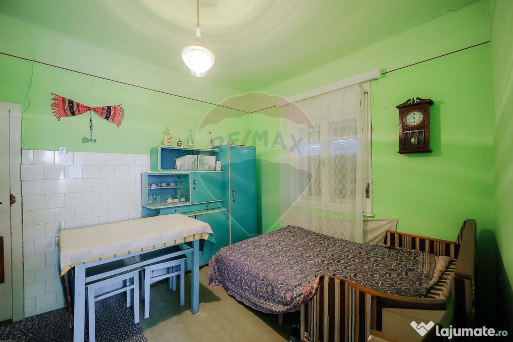 Este racordată la curent, are o sobă de teracotă, gaz la stradă, dar necesită renovare totală.