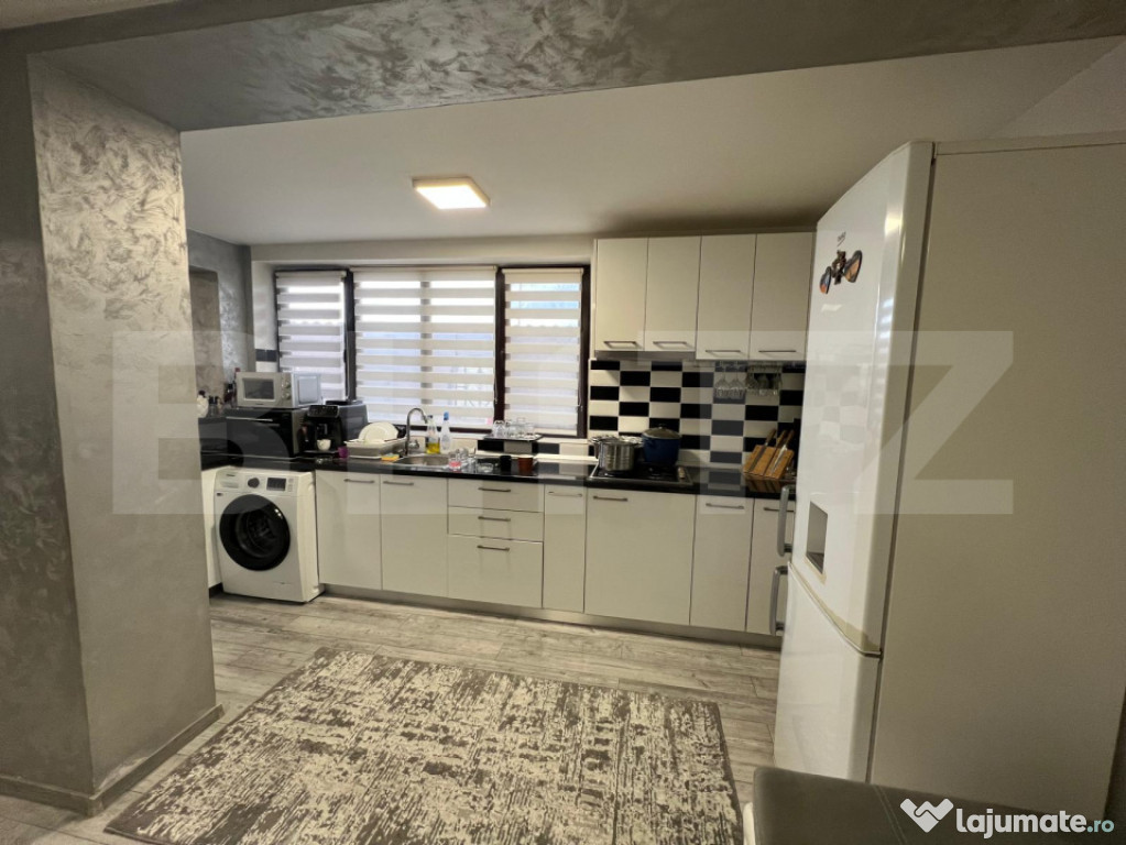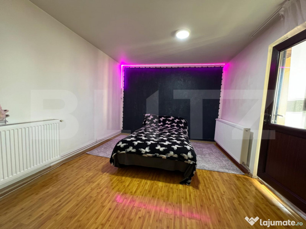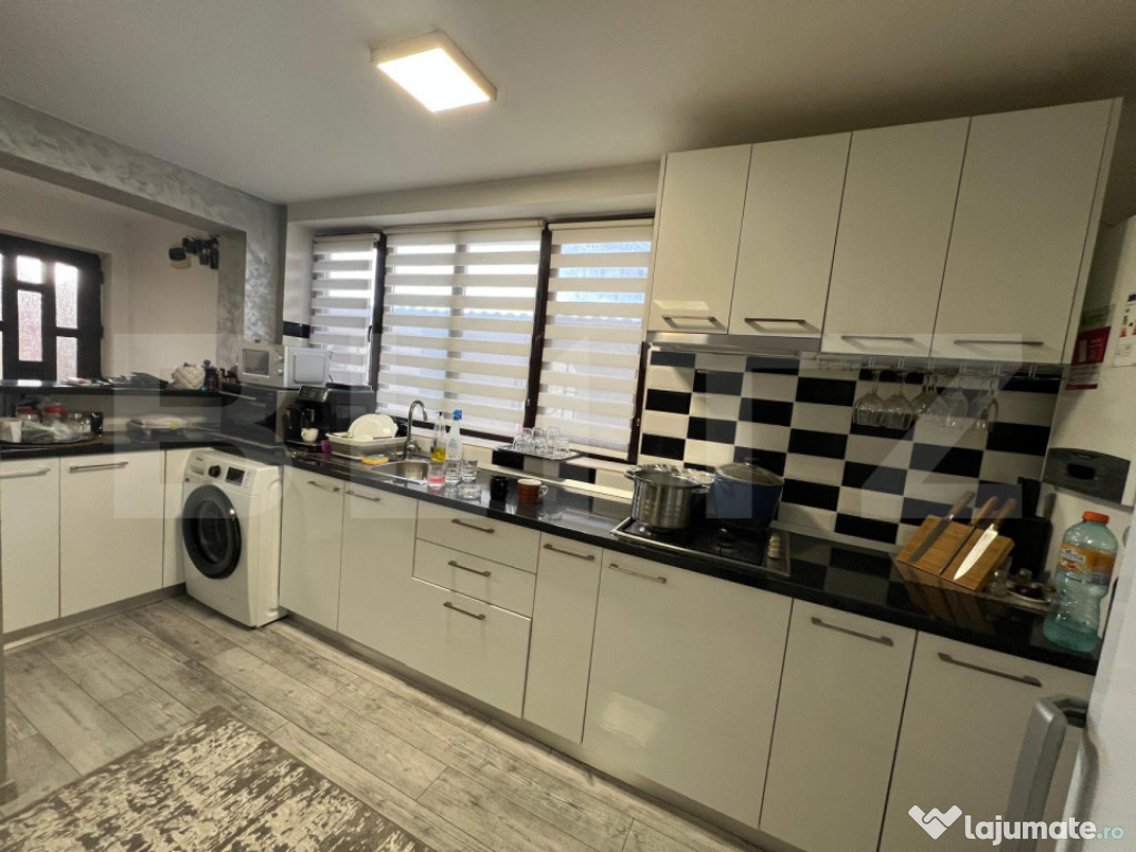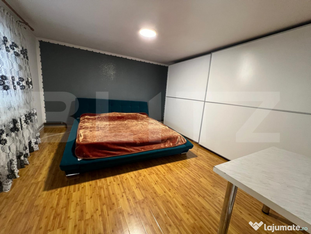 4 dormitoare spațioase, Living open-space cu bucătărie modernă, perfect pentru momentele petrecute împreună cu familia, 1 baie complet echipată, Mansardă cu posibilitate de amenajare după preferințele viitorului proprietar (birou, spațiu de relaxare, loc de joacă etc.),. Casa se vinde mobilată și utilată complet, gata pentru a fi locuită imediat.