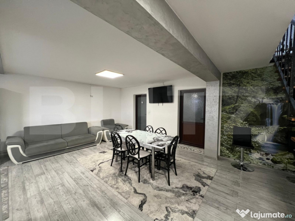 Blitz vă propune spre vânzare o casă complet mobilată și utilată, 365.000 Euro negociabil, ideală pentru o familie care caută confort, spațiu și acces facil la facilități urbane.Proprietatea este structurată pe Parter + Etaj + Mansardă (P+1+M) și are o suprafață utilă de 155 mp. Casa este compartimentată inteligent, oferind: