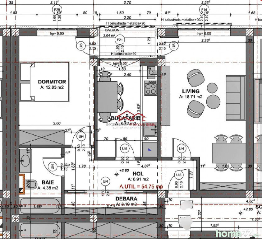 - un dormitor cu acces balcon;