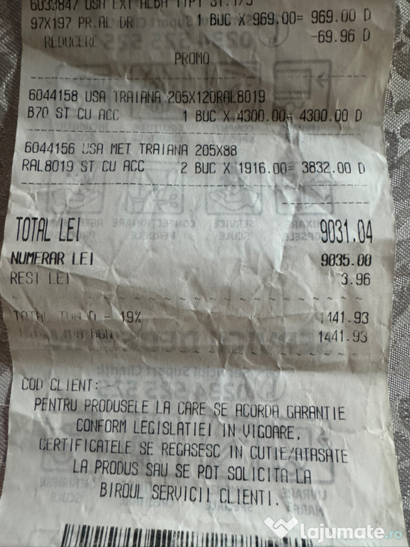 Se vând 2 uși metalice noi nouțe la cutie. Dimensiuni 205x88. Preț de achiziție 1916 lei. ...