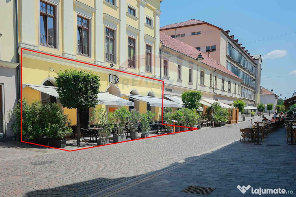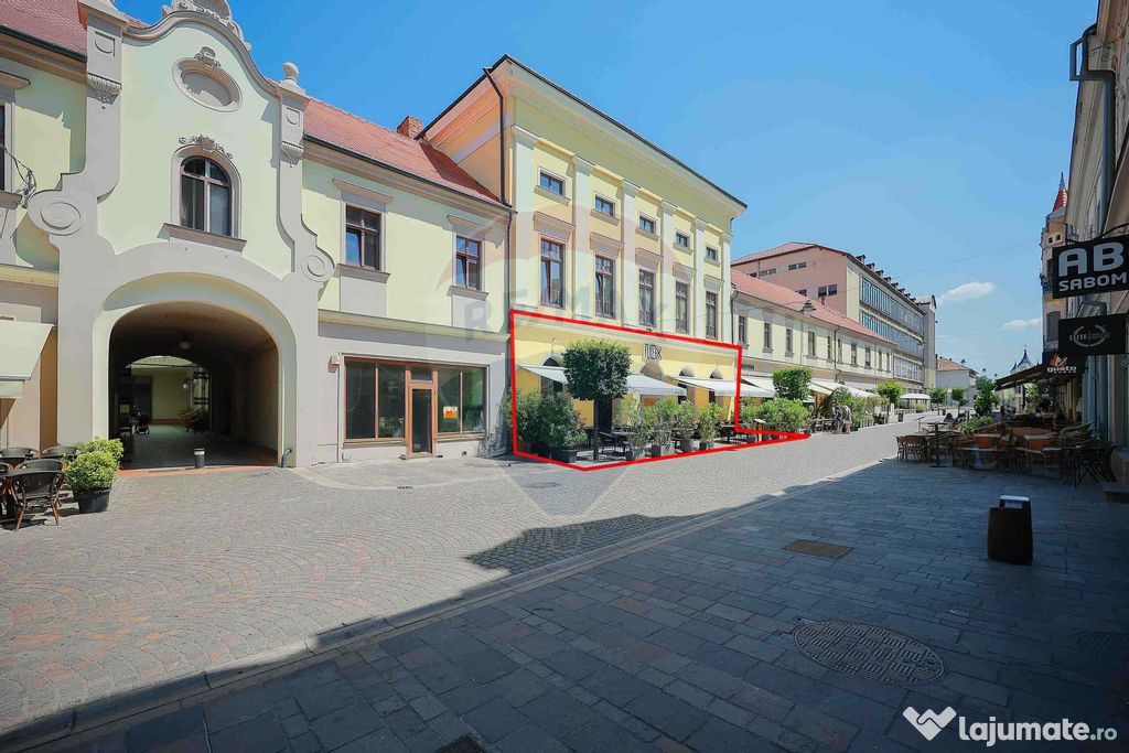 De vânzare — Spațiu comercial parter 409 mp, Vasile Alecsandri (Ultracentral, vad pietonal, chiriaș 5+5 ani)Potrivit investitorilor care urmăresc venit pasiv imediat și siguranță pe termen lung, acest spațiu se tranzacționează cu chiriaș stabil, contract 5+5 ani, în cea mai puternică zonă pietonală din Oradea: str. Vasile Alecsandri nr. 10, la câțiva pași de Piața Unirii și la 2 minute de Primărie. Locația oferă vizibilitate, acces facil și proximitatea imediată a axei de cafenele și restaurante.