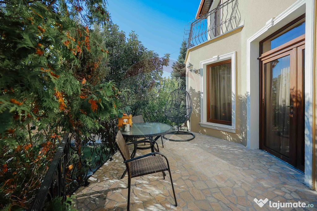 Dotări: complet mobilată și utilată, uși și parchet din lemn masiv, pardoseală din travertin, glafuri din marmură interior/exterior.