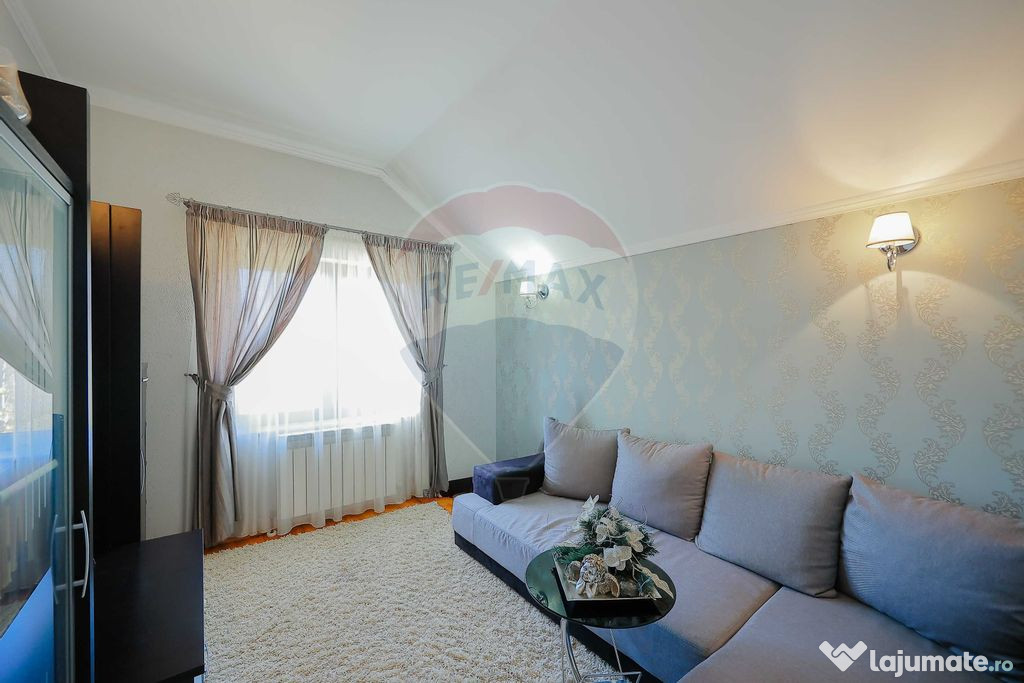 Vă prezentăm spre vânzare o casă modernă cu 6 camere + living și dining, grădină amenajată și terasă, situată pe Str. Făcliei, cu o panoramă frumoasă.Această proprietate este ideală pentru o familie care caută confort, spațiu bine organizat și intimitate într-o zonă liniștită, cu acces rapid către principalele puncte de interes din oraș. Strada privată oferă siguranță și exclusivitate, iar proximitatea față de Aquapark Nymphea, școli, grădinițe, zona centrală și parcuri face ca locuința să fie perfectă pentru un stil de viață echilibrat.