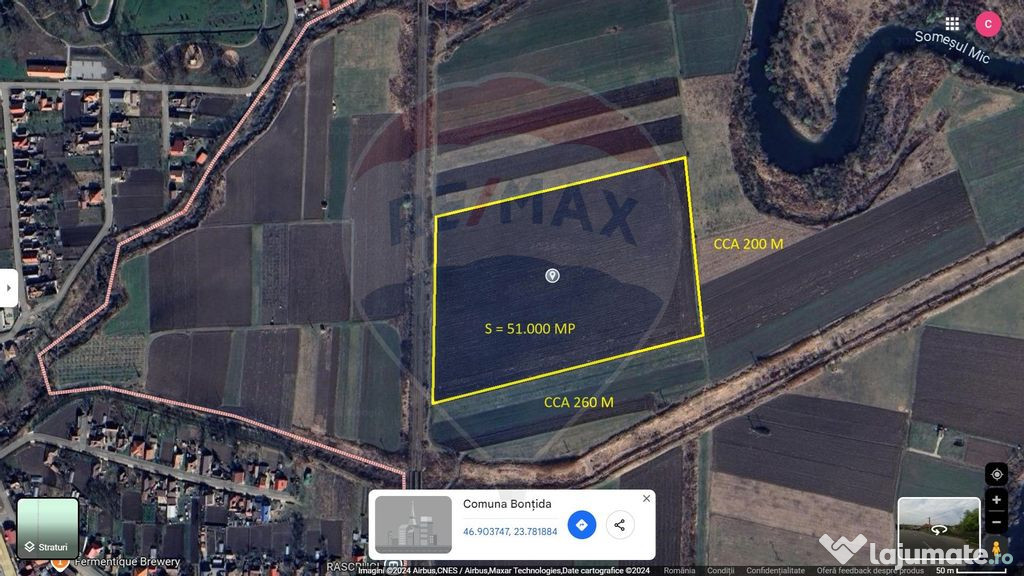 Mai este disponibila la vanzare inca o parcela de 2.5 ha, in total puteti achizitiona 5.1 ha, cu front de 190 m si lungime de 270 m; de asemenea, puteti achizitiona si o suprafata mai mica de 11300 mp, 5700 mp sau 8600 mp.