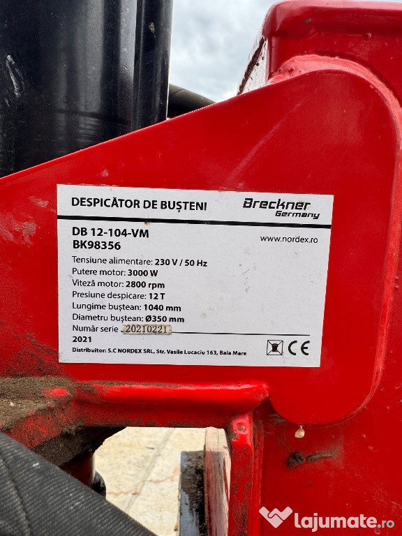 Vând despicator de bușteni Breckner Germany DB 12-104-VM, în stare foarte bună, folosit foarte puțin. ...