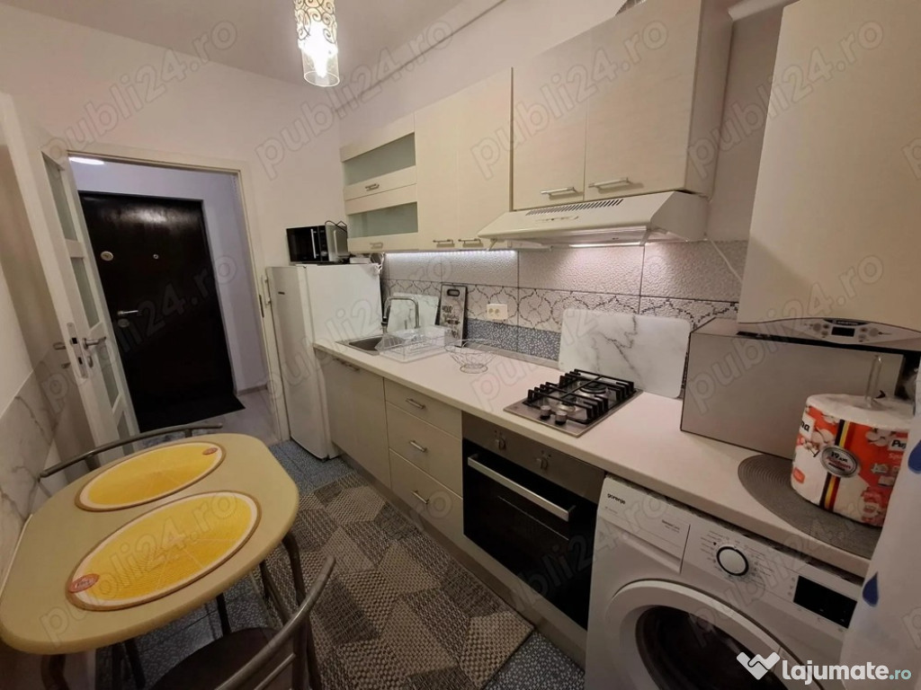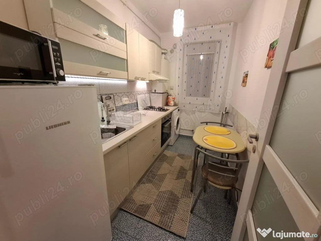 garsoniera decomandata,situata pe Sos.Berceni,amplasata pe spate (ferita de zgomot),fix la metrou D.Leonida (M2 Berceni-Pipera),33 mp.Bloc nou 2019(monitorizat video 24 7),etaj 1,balcon,mobilata si utilata complet (plita + cuptor,hota,frigider,cuptor microunde,masina de spalat,pat matrimonial-saltea noua,Smart TV Samsung 4 K 108cm,cablu+net 1000 MB Digi,A.C.,centrala proprie + ambient wireless,videointerfon,aspirator fara sac,plase de tantari,etc.),costuri mici de intretinere.Chirie 1+1(garantie),perioada indelungata.Garsoniera NU este pet friendly.Pentru detalii nu ezitati sa ma contactati.Va asteptam la vizionare.Confort: 1