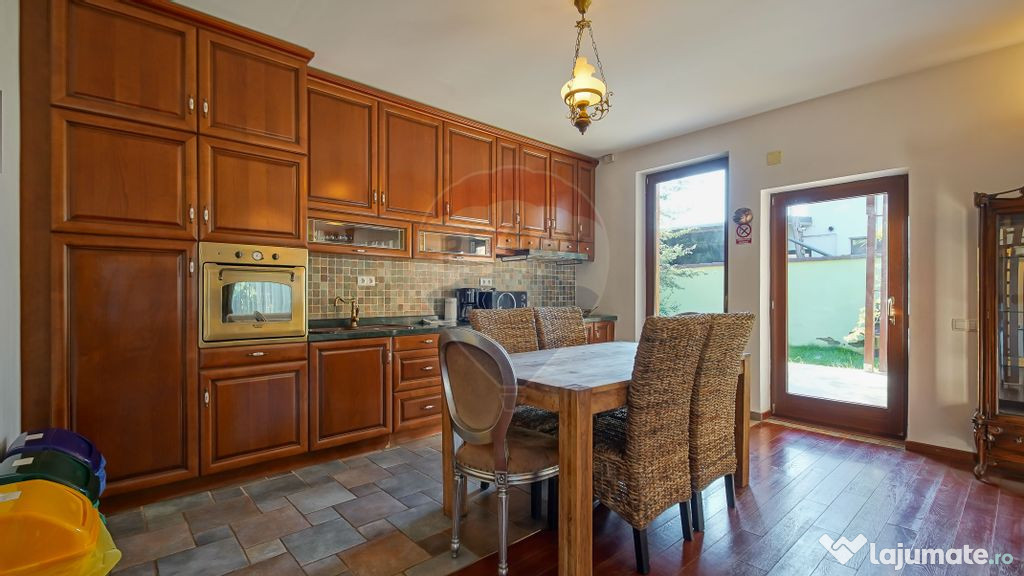 Vă invit să descoperiți un loc special, unde liniștea naturii se împletește perfect cu confortul unei locuințe moderne. Casa pe care o ofer spre închiriere este situată în Sânpetru – o localitate cochetă, atât de aproape de Brașov încât poate fi considerată un adevărat cartier rezidențial al orașului, dar suficient de retrasă încât să vă ofere intimitate și un stil de viață relaxat.Terenul de 711 mp este plin de vegetație matură și arbuști care formează un cadru natural spectaculos și protejează casa de privirile trecătorilor. Veți simți de la prima vizită că e un loc care inspiră liniște și siguranță. Accesul este exclusiv – doar cei care locuiesc aici sau au treabă pot intra în zonă.