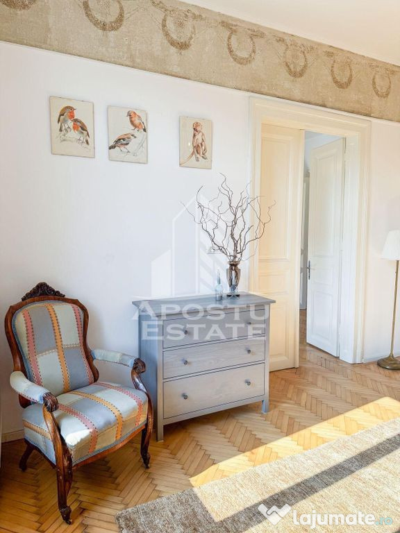 APOSTU ESTATE va propune spre inchiriere un apartament foarte spatios cu 4 camere 3 bai confort 1 sporit circular situat la etajul 2/2 intr-o cladire istorica mai exact Palatul Jakab Klein zona Elisabetin.Confortul termic se realizeaza prin intermediul centralei pe gaz si al aerului conditionat.