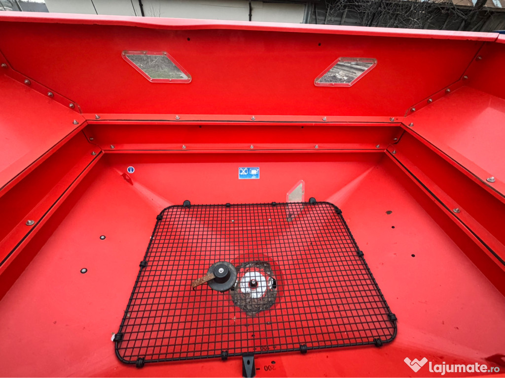 2 discuri de împrăștiere din inox + închidere deschidere din inox realizată hidraulic din cabina tractorului.