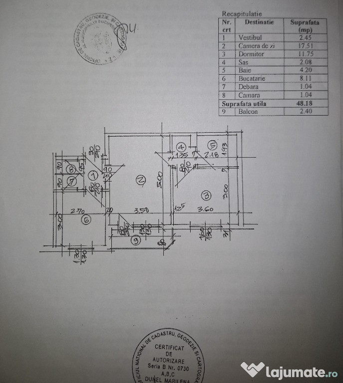 Apartamentul are o compartimentare semidecomandata si o suprafata utila de 48,18mp plus balcon de 2,40mp.