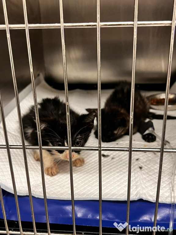 Adopție pisoi!Opa ce avem aici! 2 ghemotoace de blana! Un motănel (cel negru) și o pisicuță(cea alb cu negru), au fost 3 dar când am ajuns la ei am mai găsit doar 2 în viața! Am fost la veterinar și sunt bine amândoi! Urmează deparazitarea dar trebuie să mai luăm puțin în greutate și după primul vaccin! Haideți să le găsim o căsuță! Sunt liniștiți, jucăuși dar încă puțin fricoși, fac la litieră și mănâncă bine! Mă ofer să-i și castrez chiar dacă pisoi nu mai sunt în posesia mea!(Bucuresti)