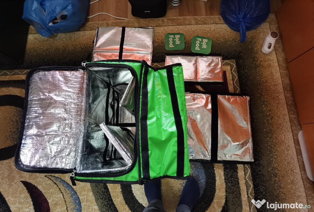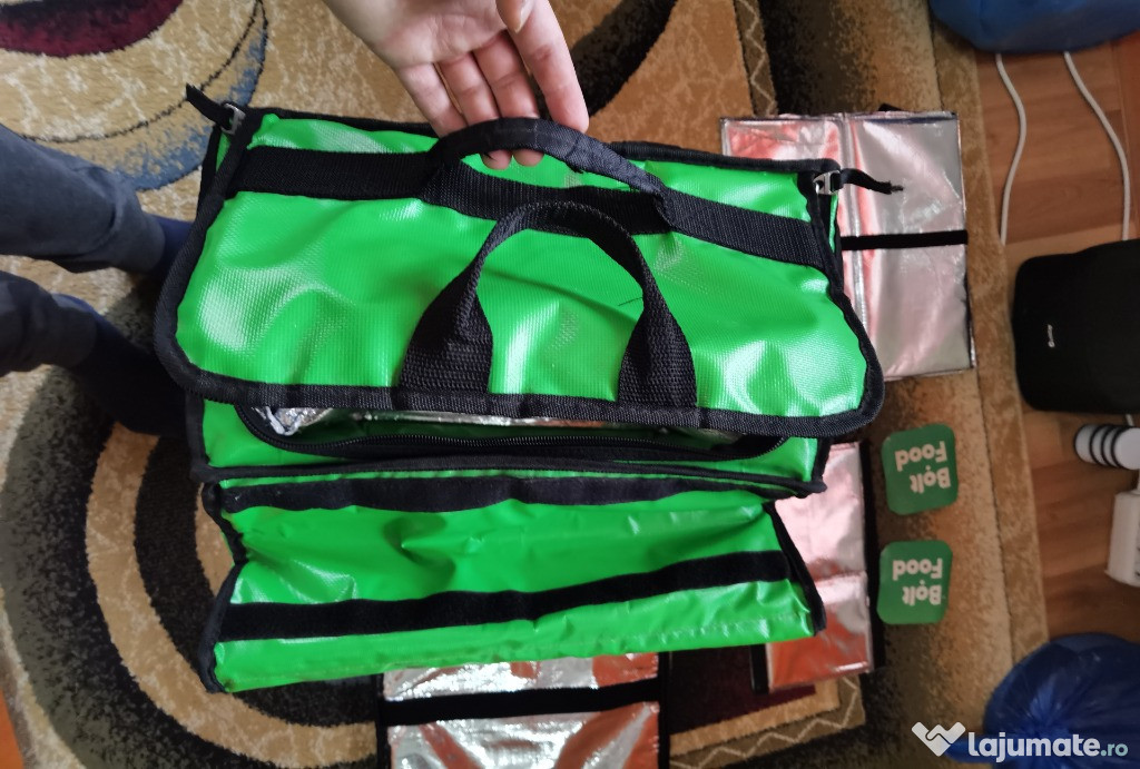 - vand geanta bolt food termoizolanta cu accesorii, 2 magneti pentru masina facute la firma pim- folosita cateva luni la livrari cu masina, stare buna, fermuare unse si functionale fara probleme, nu prezinta rupturi, nu miroase a mancare