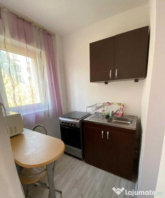 spre închiriere o garsoniera modernă, luminoasa și eficient compartimentata. Este situata in zona Dristor – Râmnicu-Sărat – Schitului, in bloc reabilitat termic, bine îngrijit, 2 lifturi, aproape de metrou (10 min de Dristor 1 / M1 si M3), Park Lake, Piata Ramnicu Sarat.Garsoniera este situată la et.3/8, mobilată (a se vedea foto) și utilata complet: frigider, aragaz cu cuptor, cuptor microunde, masina de spalat rufe, frigider, aer conditionat. Baie cu cadă si bucatarie separata. Ferestre și usi interioare din termopan. Este liberă, curata, pregatita pentru mutare imediata.