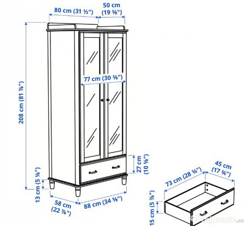 Se vinde set dulap de baie de la ikea. Acesta conține dulap mașină de spălat + dulap rufe, având dim ...