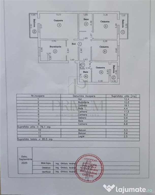 Agentia Imobiliara PRIMUM - Timisoara are placerea de a va prezenta spre vanzare apartament cu 3 came ...