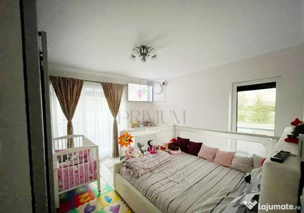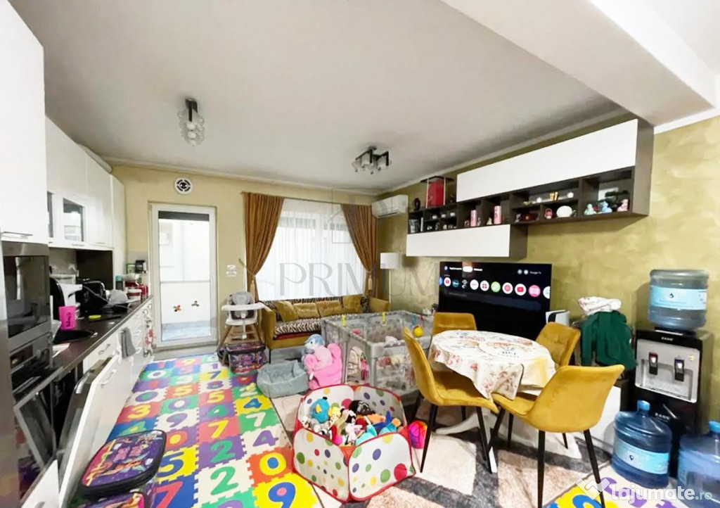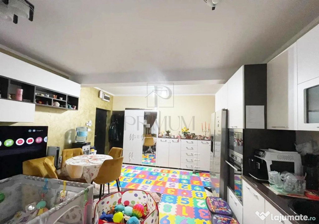 Se vinde complet mobilat si utilat cu: combina frigorifica, plita incorporata, cuptor electric, hota, clima, centrala termica cu incalzire in pardoseala, etc.