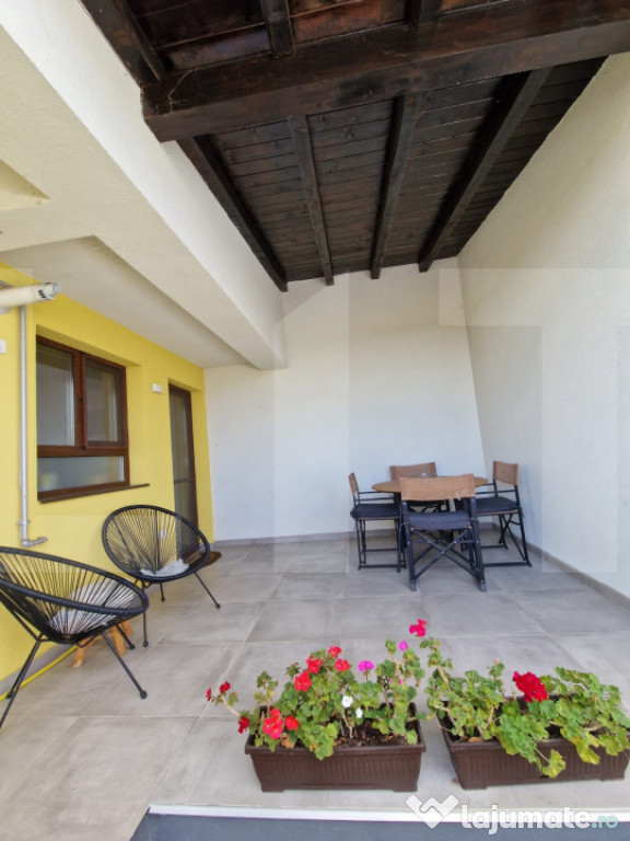 Terasă acoperită: 15 mp (dotată cu masă și scaune)