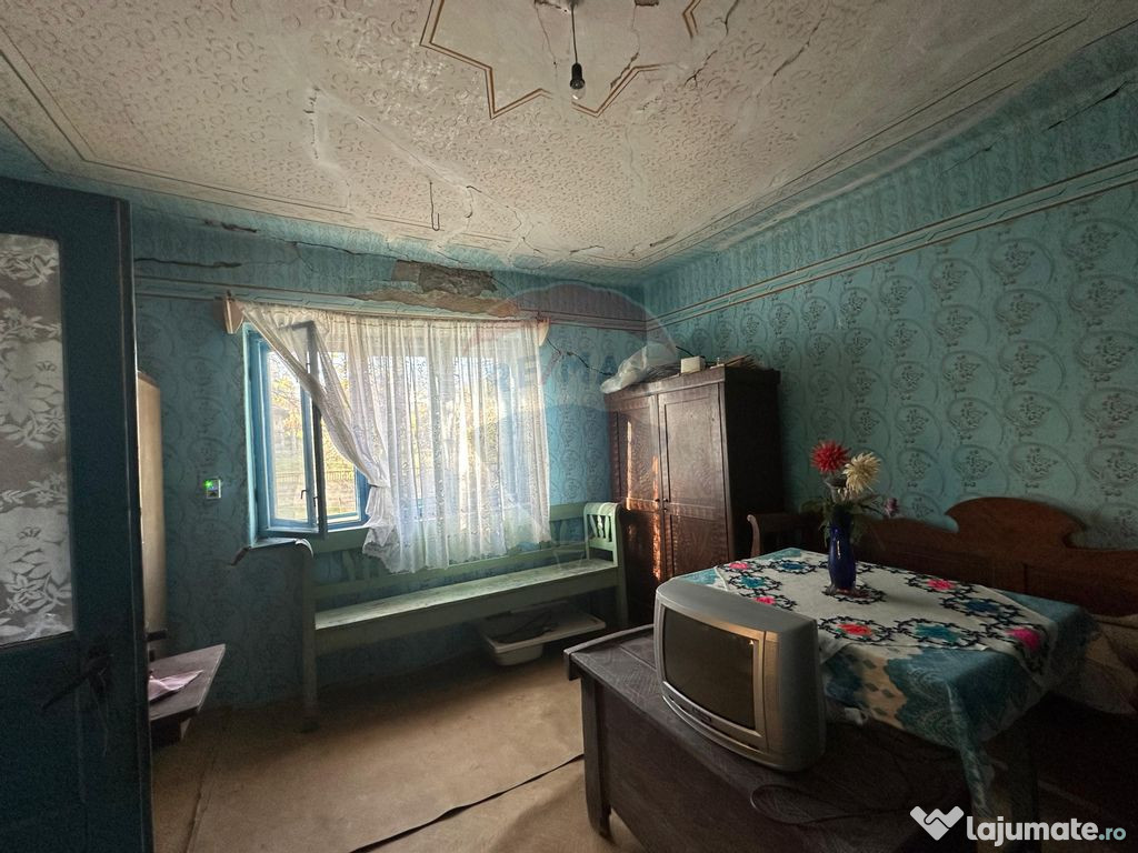Casa impreuna cu constructiile anexa , necesita restaurare , dar curtea , copacii , pomii fructiferi , vegetatia si peisajul oferit de locatie sunt bonusul care vine la pachet .