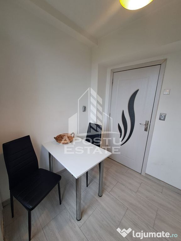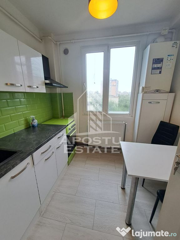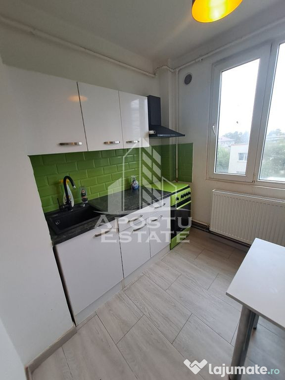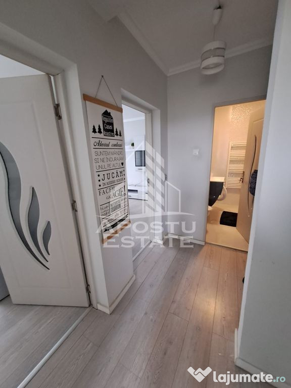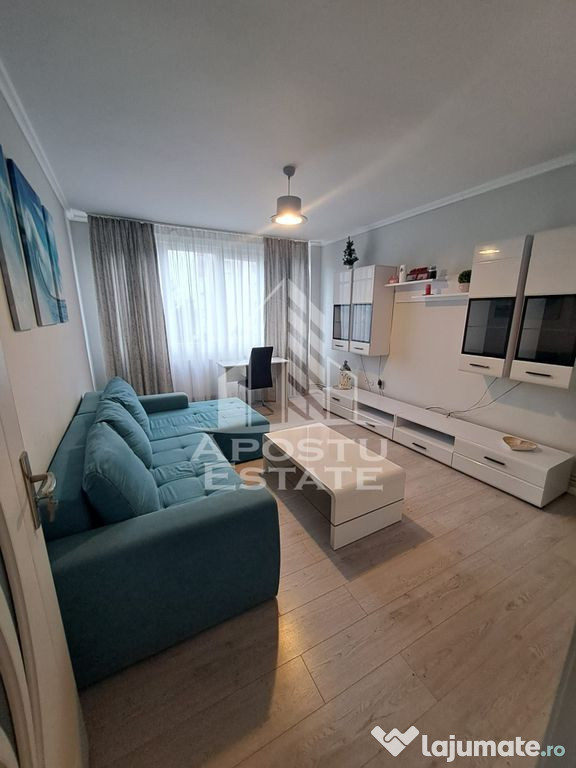 Compartimentare: hol de acces, living luminos si spatios, bucatarie complet mobilata si utilata cu loc de luat masa, dormitor matrimonial mobilat,