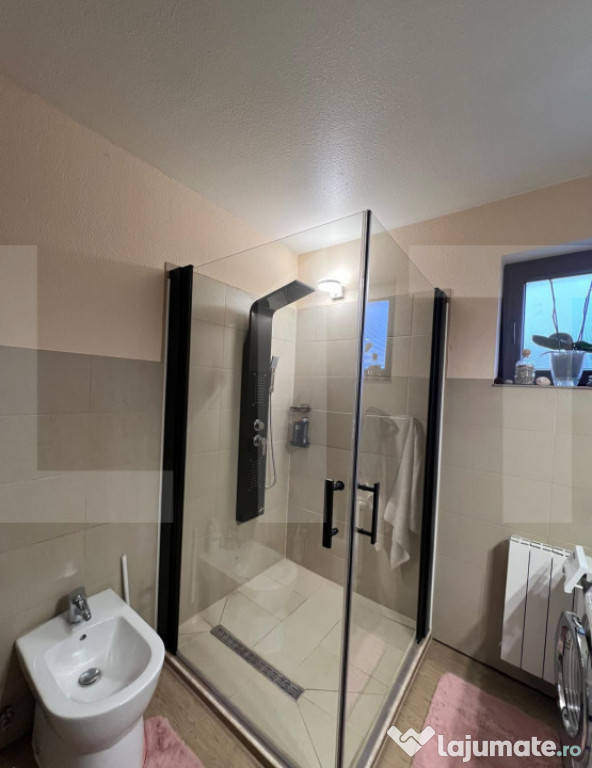 Casa este de 418 mp cu o curte frumos amenajata in fata si un spatiu de relxare in spate cu iesire de pe terasa.
