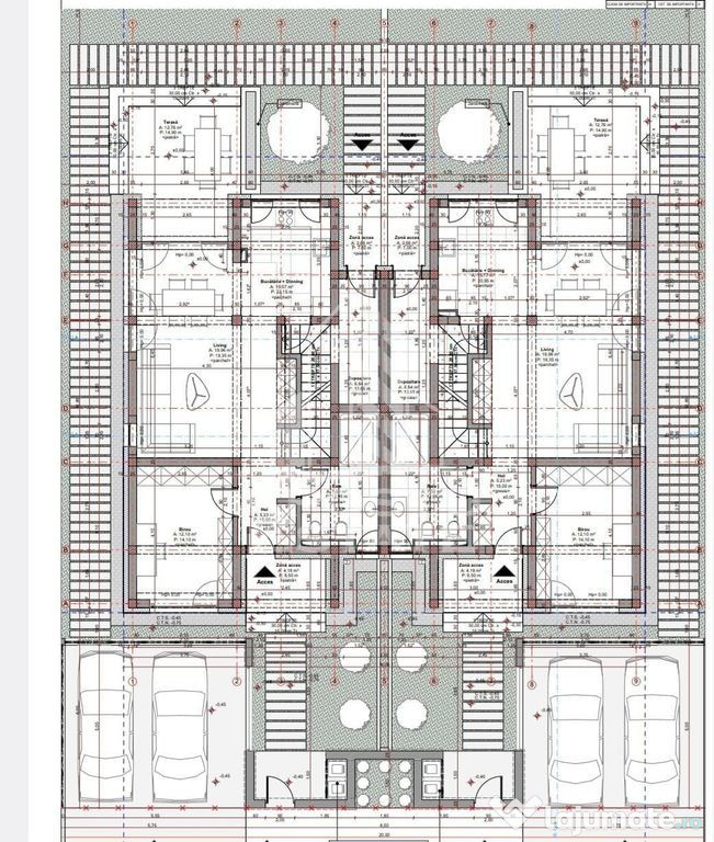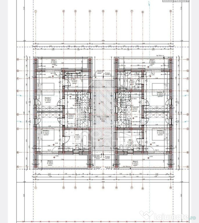 Imobilul este construit pe o suprafață de teren de 600mp, respectiv 300mp/parte.