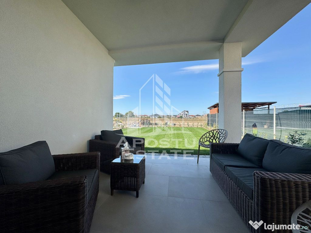 Apostu Estte va ofera spre vanzare duplex In Mosnita Noua despartit prin camera tehnica cu toate utilitatiile.Constructie noua 2025 din caramida pe regim de inaltime P+E.