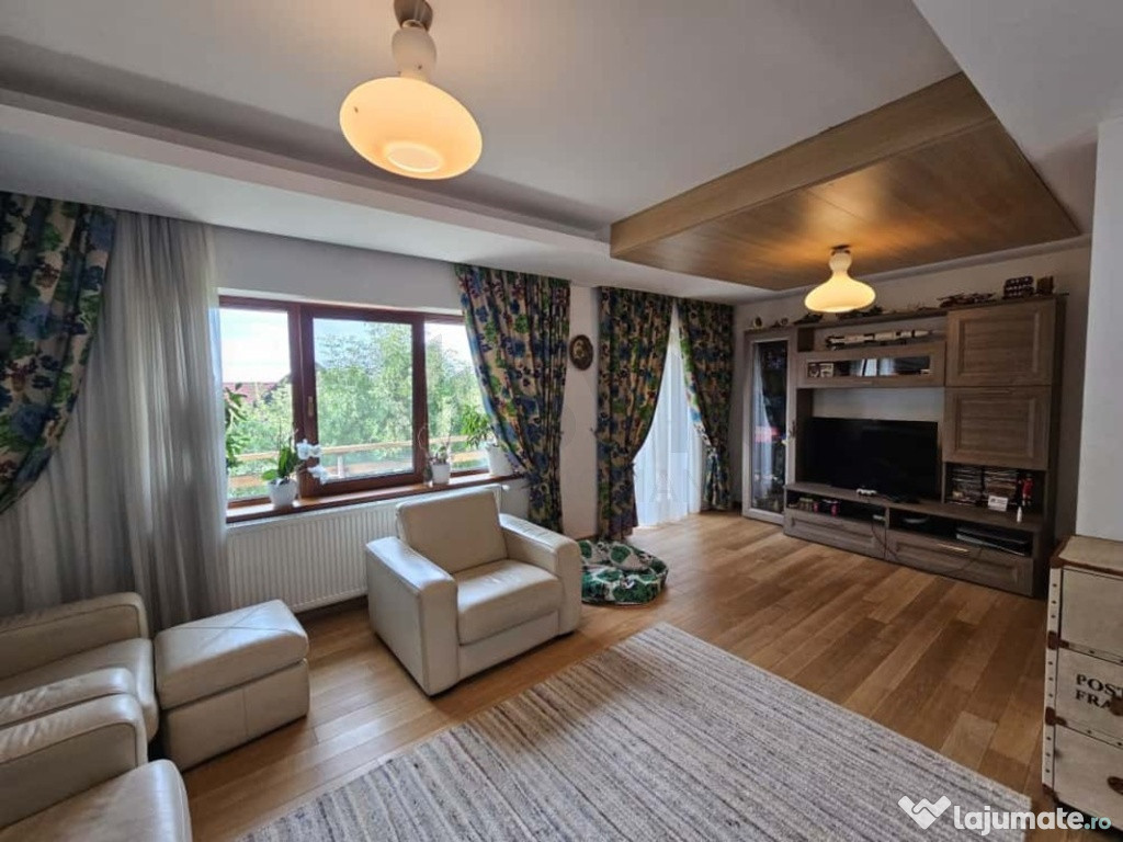 Locuinta este dotata cu centrala proprie si panouri fotovoltaice, asigurand eficienta energetica si costuri reduse de intretinere.
