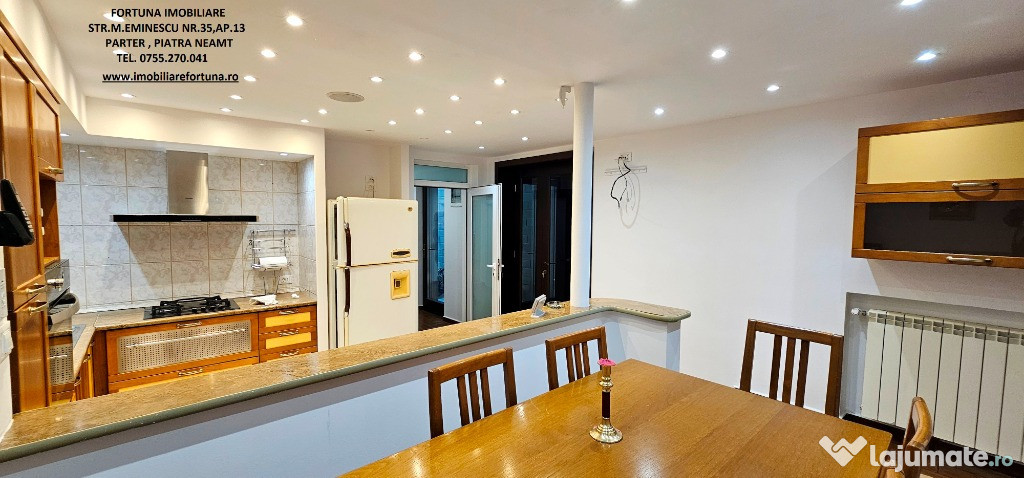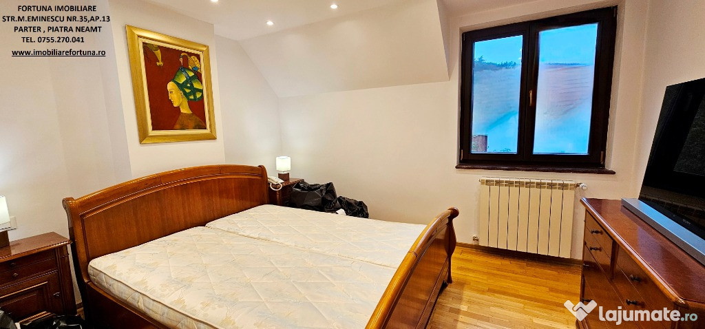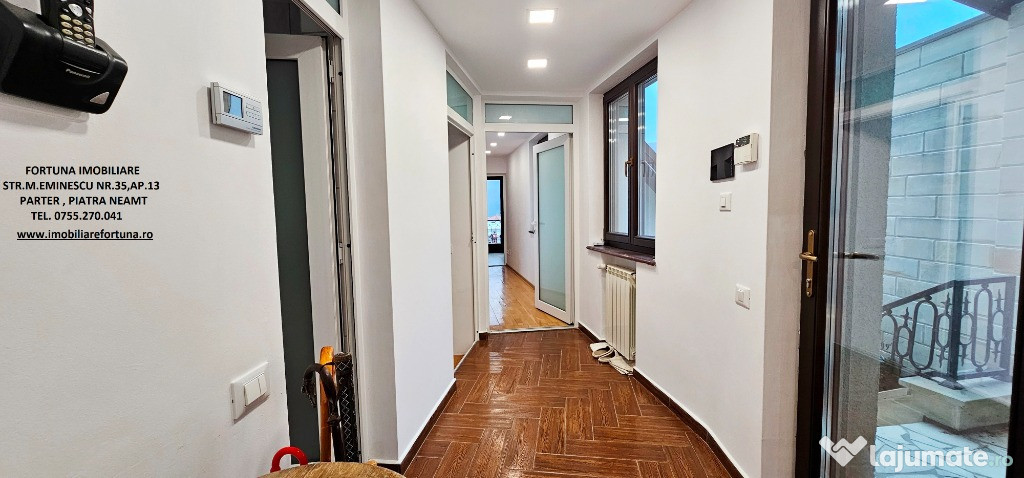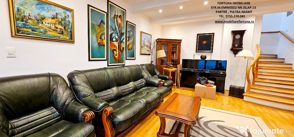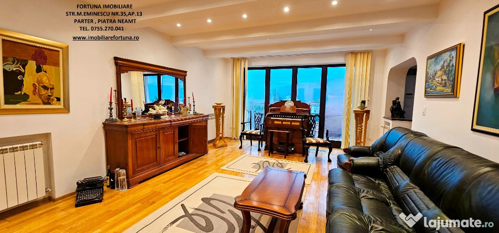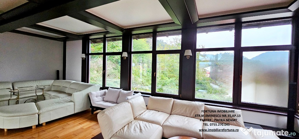 CASĂ DE EXCEPȚIE CU 4 NIVELURI,CU UN DESIGN MODERN/INOVATIV ȘI 841 MP TEREN, SITUATE ÎN ZONA CENTRALĂ A MUN. PIATRA NEAMȚ, ÎNTR-UN CADRU LINIȘTIT - LA POALE DE MUNTE, 320.000 EURODacă vă doriți o casă care să ofere o priveliște unică a orașului, să îmbine tehnologia, confortul și estetica, FORTUNA IMOBILIARE este încântată să vă propună spre achiziție această superbă proprietate, amplasată în Mun. Piatra Neamț, într-un ansamblu rezidențial deosebit de atractiv, verdeață, liniște și aer curat.