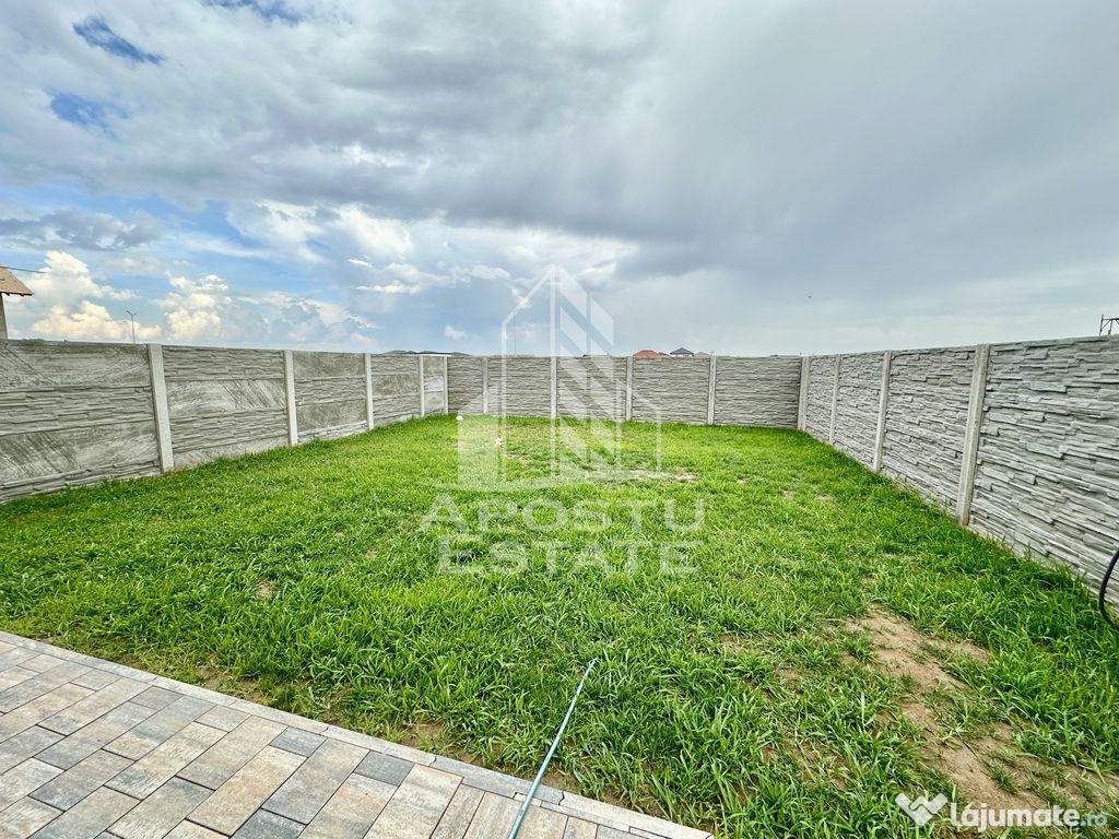 Gardul este realizat din placi de beton iar curtea va fi amenajata cu sistem de irigare si gazon.