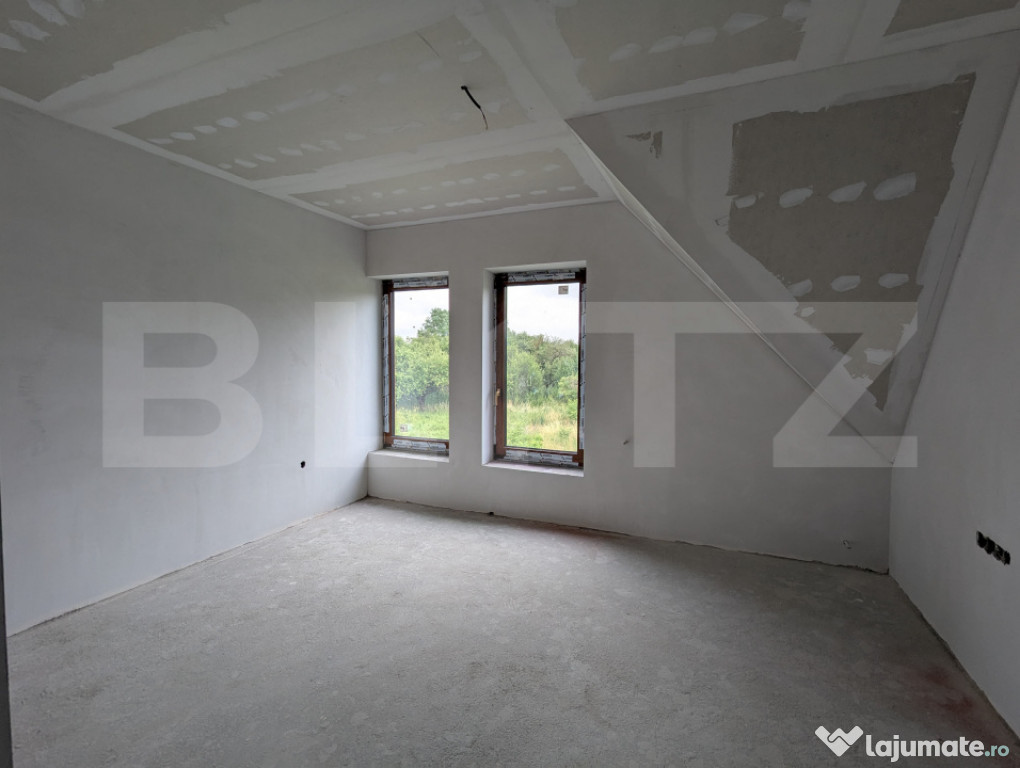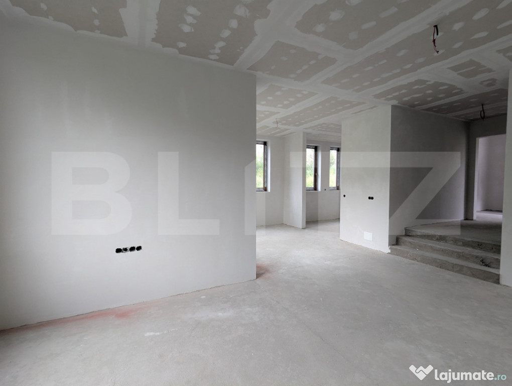 Predare la semifinisat: pereți gletuiți, sape turnate, încălzire în pardoseală la parter, instalații trase pe poziții. Se predă racordată la toate utilitățile.