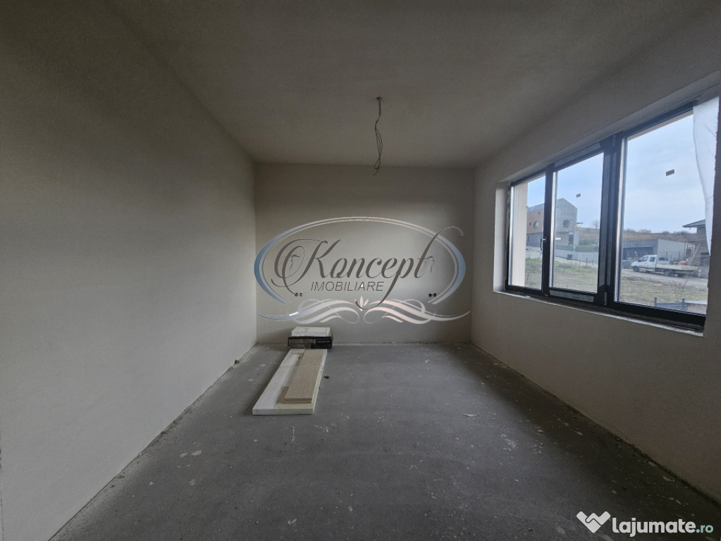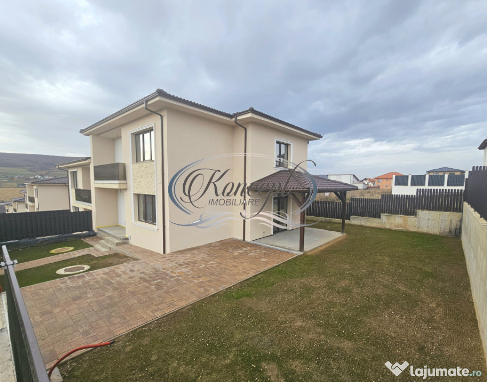 Koncept Imobiliare va ofera spre vanzare un duplex modern situat la intrarea in Chinteni, intr-o zona linistita cu trafic redus, la aproximativ 8 minute de mers pe jos de statiile de autobuz. Proprietatea beneficiaza de acces facil spre Cluj-Napoca si se afla intr-un areal in continua dezvoltare. Duplexul este amplasat pe un teren total de 317 mp, cu o suprafata utila de 120 mp si o curte libera generoasa de 218 mp, perfect plana si complet utilizabila. Casa este construita din caramida Cemacon de 25 cm, izolata cu polistiren de 15 cm si finisata la exterior cu tencuiala siliconica. Tamplaria este de calitate superioara, model Salamander Green Evolution 76, care asigura confort termic ridicat si eficienta energetica. Acoperisul este realizat din tigla Terran, conferind durabilitate si un aspect elegant. Curtea se preda amenajata cu gazon, terenul este ingradit, portile si gardul sunt metalice, iar pozitiile pentru automatizarea portilor sunt trase pe pozitii. Accesul pietonal este pavat, iar proprietatea dispune de doua locuri de parcare pavate. Interiorul se preda semifinisat, cu pereti tencuiti si gletuiti, instalatii electrice si sanitare trase pe pozitii si incalzire prin pardoseala pe ambele nivele, alimentata de centrala termica proprie pe gaz. La parter regasim un hol generos, baie, bucatarie cu posibilitate de inchidere sau open space si un living luminos cu acces pe terasa de 15 mp. Etajul este bine compartimentat, cu hol, trei dormitoare, doua bai si un balcon de 5 mp, oferind o distributie functionala pentru confortul intregii familii. Proprietatea se remarca prin curtea eficient gandita, aspectul modern al fatadei, zona linistita, structura de calitate si compartimentarea echilibrata. Este o alegere potrivita pentru familii care isi doresc spatiu si confort, dar si pentru cei care cauta o locuinta intr-o zona aproape de oras, cu potential bun pe termen lung. In pret este inclus TVA-ul. Pentru informatii suplimentare, programarea unei vizionari sau pentru a afla oferta noastra completa va stam la dispozitie telefonic, prin e-mail sau la sediul agentiei noastre, pe str. Aviator Badescu, nr. 19, Cluj-Napoca.Id intern: P20997