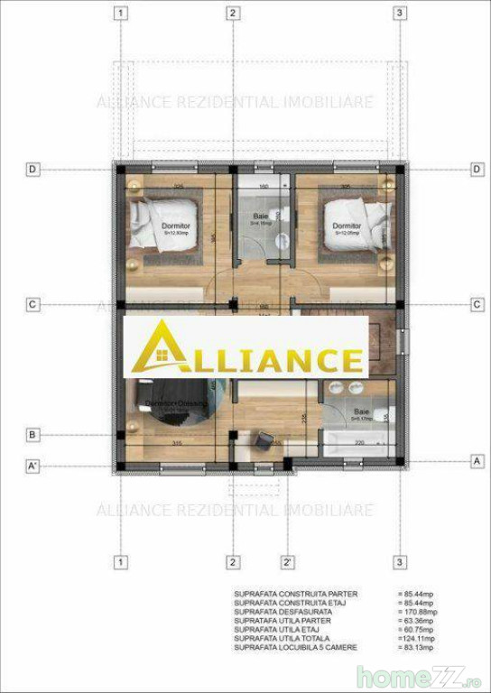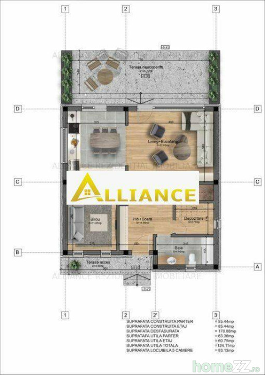 Alliance Rezidential va prezinta in exclusivitate o serie de 10 vile individuale, construite pe regim P+1, cu o suprafata utila de 155 mp si un teren de 456 mp.Casa este dispusa astfel: