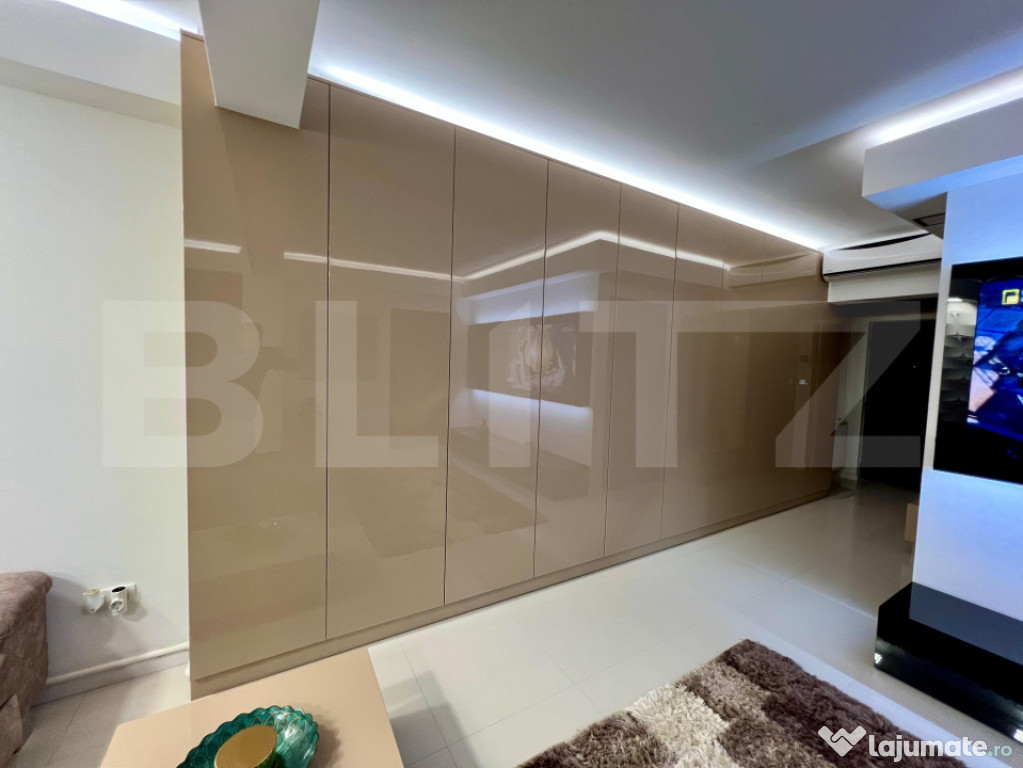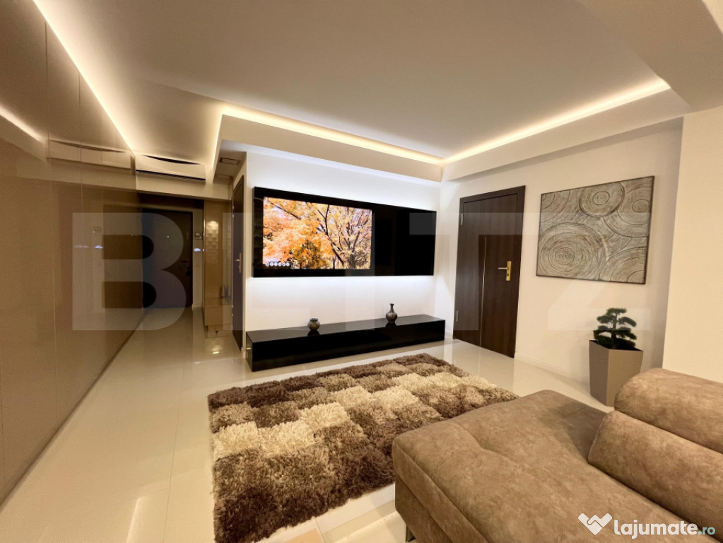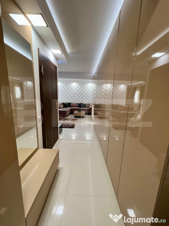 Descoperiți un apartament deosebit, situat în cartierul Tudor, la etajul 4 al unui imobil nou, cu lift și acces securizat. Un spațiu creat pentru confort, stil și rafinament – perfect pentru cei care apreciază calitatea și designul contemporan.Locuința impresionează încă de la intrare prin jocul subtil al luminilor ambientale și prin paleta cromatică rafinată, bazată pe tonuri calde de bej, alb perlat și accente naturale.