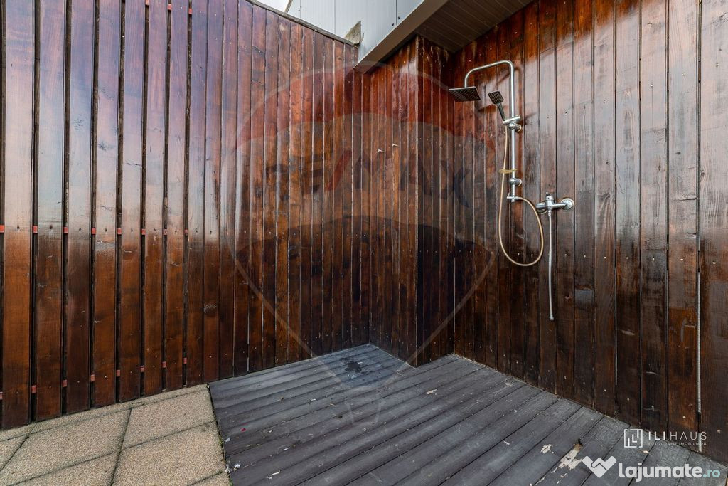 Dotată cu zonă de grătar și duș exterior